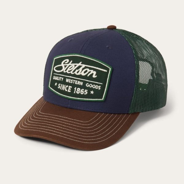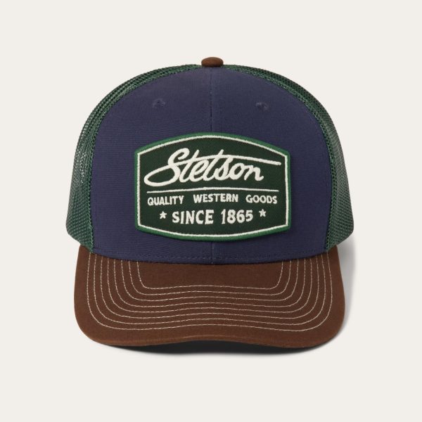 This rugged trucker cap features a Stetson heritage script logo on its rugged brushed cotton canvas front. It has a traditional mesh back for breathability and ventilation, a gently curved bill and a classic snapback closure to ensure a secure, adjustable fit.