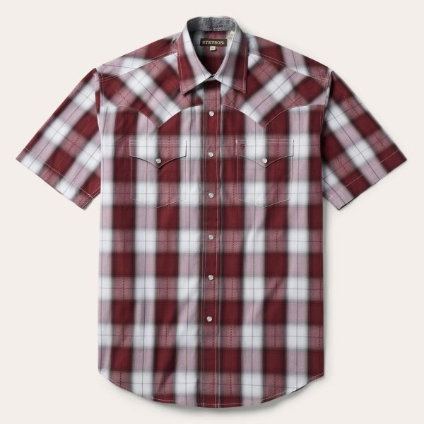 This Western shirt is crafted from a yarn dyed plaid cotton dobby with a one-point ultra-deep curved back yoke. It features a Stetson “S” logo embossed on the front left pocket and contrast inside trim and its classic snap front features logo pearl snaps. Crafted with 100% cotton for quality and breathability, it has a feel that will only get better with age.