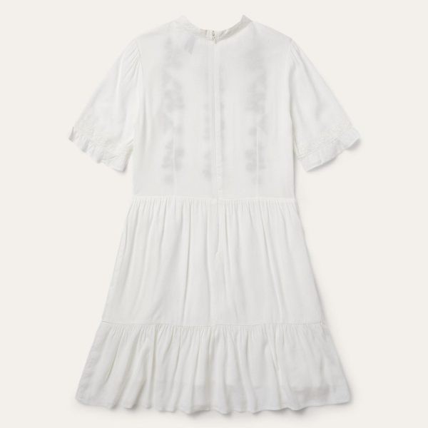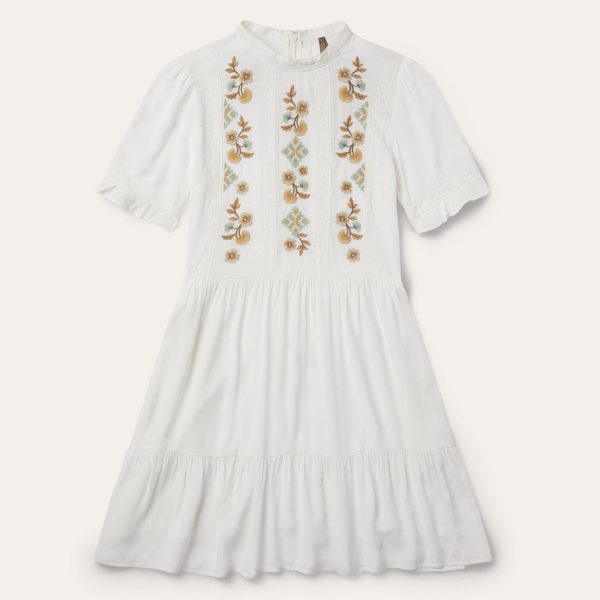 This soft and flowing dress pairs Western embroidery with a bohemian silhouette. Finished with charming details like ruffles at the sleeves and lace overlays, plus pockets for added utility.